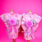 オーダーメイド犬服の着物花結びホワイト&ピンク(帯電防止加工裏地つき)