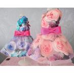 オーダーメイド犬服のシルクタッチローズワンピース ピンク&ブルー(パニエ内蔵)