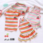 【売切御免】犬服 猫服 タンクトップ キャミソール 春夏秋 さくらんぼ ボーダー柄 カラフル虹 ワンピース ドッグウェア 可愛い チワワ トイプードル FS17