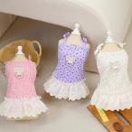 新作 超可愛い 秋服 犬服 小型犬 ワンピース 小花柄 Dカン付 レース キャミソール 袖なし おしゃれ 春トップス【a369】【送料無料】