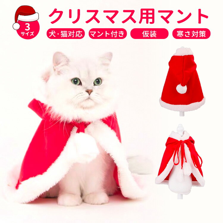 犬服 クリスマス サンタクロース ペット コスチューム マント 帽子 猫 犬 ドレスアップ 仮装 ファンシー かわいい 子犬 クリスマスパーティー