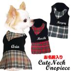 犬 服 犬の服 名入れ 秋冬 チェック スカーフ チワワ トイプードル 名前入り キュートネック ワンピース