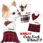 犬 服 犬の服 春秋服 冬服用 名前入り キュートネックホワイトワンピース(O/H/) スカーフ チェック プリーツ
