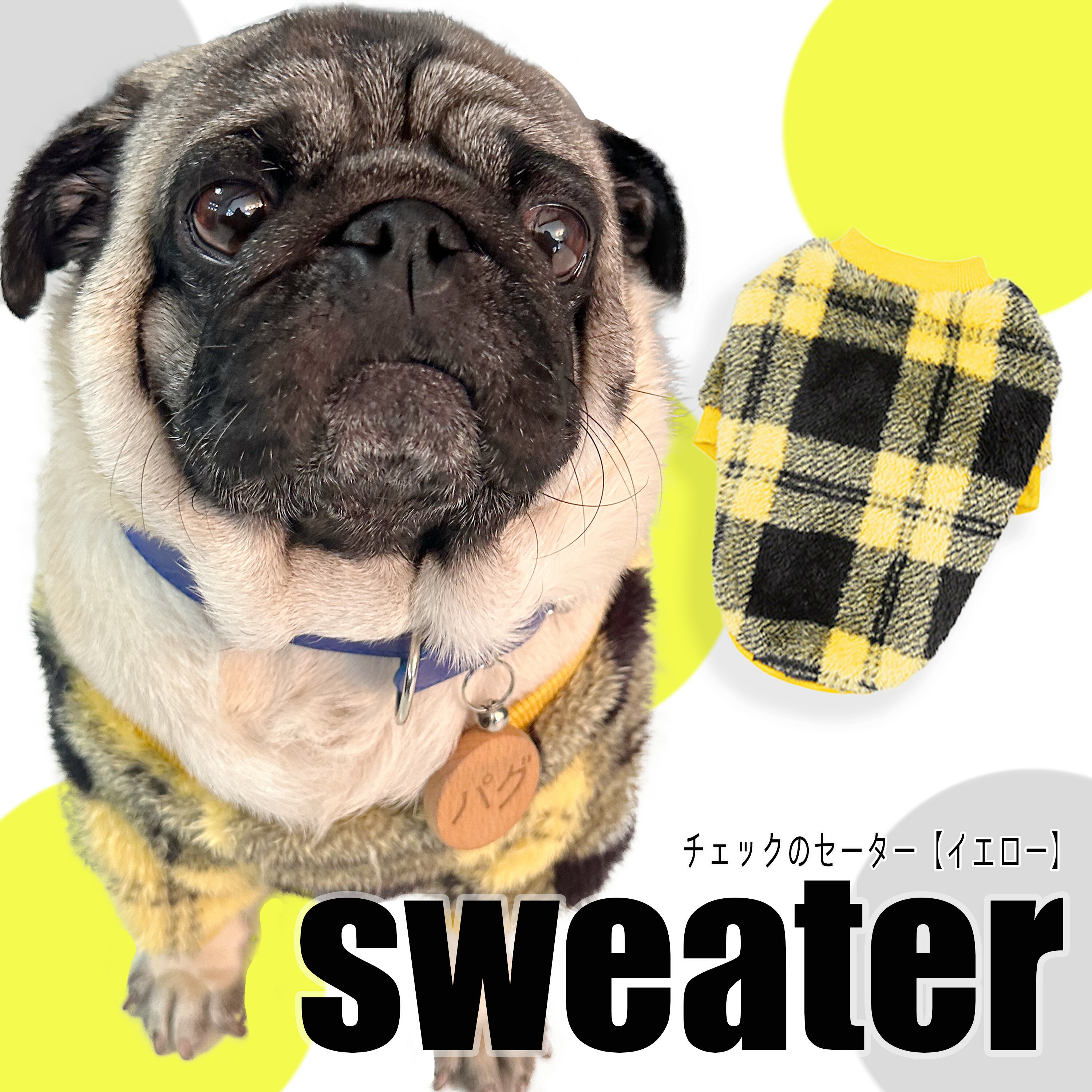 【G-snap】セーター チェック イエロー 黄色 トップス 犬 小型犬 犬用 犬服 ウェア ドッグウエア 犬の服 M L XL XXL ワンちゃん おでかけ お散歩 イベント 秋 冬 人気 インスタ 映え 2023 プードル チワワ ダックス フレブル パグ パグ かわいい 撮影 プレゼント オシャレ