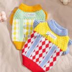 ペットウェア ペット服 犬 小型犬 中型犬 猫 ドッグウェア キャットウェア ペット用品 ニット セーター 上着 チェック柄 格子柄 花飾り 花柄 ト
