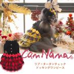 犬服 セーター ドッグウェア リブ×タータンチェックドッキングワンピース 秋 冬服 冬ワンピ きゃんナナ SS-Lサイズ ドッグウェア レッド イエロー