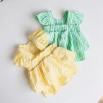 春夏ペットサロペットストライプサンドレス イエロー・グリーン新商品 わんちゃん服 犬用品 ドッグウェア ペット 犬服可愛い ペットモデル 韓国風