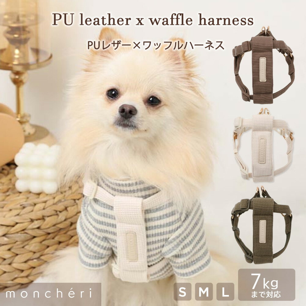 【LINE追加10%OFFクーポン】 moncheri モンシェリ 犬 ハーネス リード かわいい おしゃれ 人気 ブランド トイプードル チワワ 小型犬 中型犬 犬用 抜けない 引っ張り防止 負担が少ない 散歩 お出かけ ワッフル生地