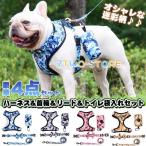 犬 猫 ハーネス リード 首輪 トイレ袋入れ 4点セット ペット 胸あて 迷彩 胴輪 キャット ドッグ メッシュ