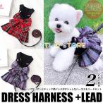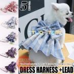 犬 ハーネス リード 付 ドレス リボン チェック 2カラー ウェアハーネス ペット 服 ワンピース 胴輪 キャット ドッグ