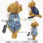 犬服 ハーネス リード 2点セット デニム ドッグウエア 小型犬 ペット服 ジーンズ 中型犬 犬用 胴輪 ペット用品 ドッグ服 首輪