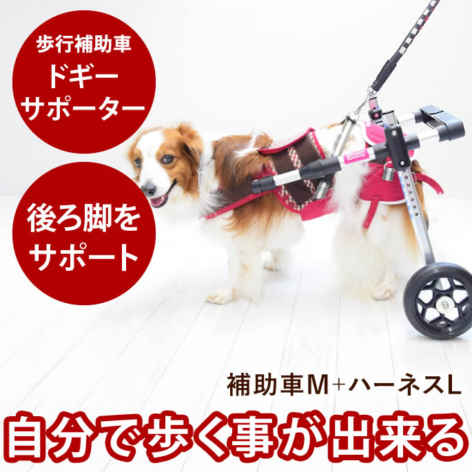 【割引クーポン配布中】歩行補助車 ドギーサポーター 補助車Mサイズ+ハーネスLサイズセット 犬用 車椅子 前足 後ろ足 レンタル 介護用 車いす 小型犬 中型犬 胴輪 ハーネス 補助器具 散歩 歩行補助