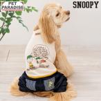 スヌーピー 犬 服 春 ワッペン パンツつなぎ 中型犬 SM | 袖なし ベージュ オーバーオール ブランド カジュアル おしゃれ かわいい
