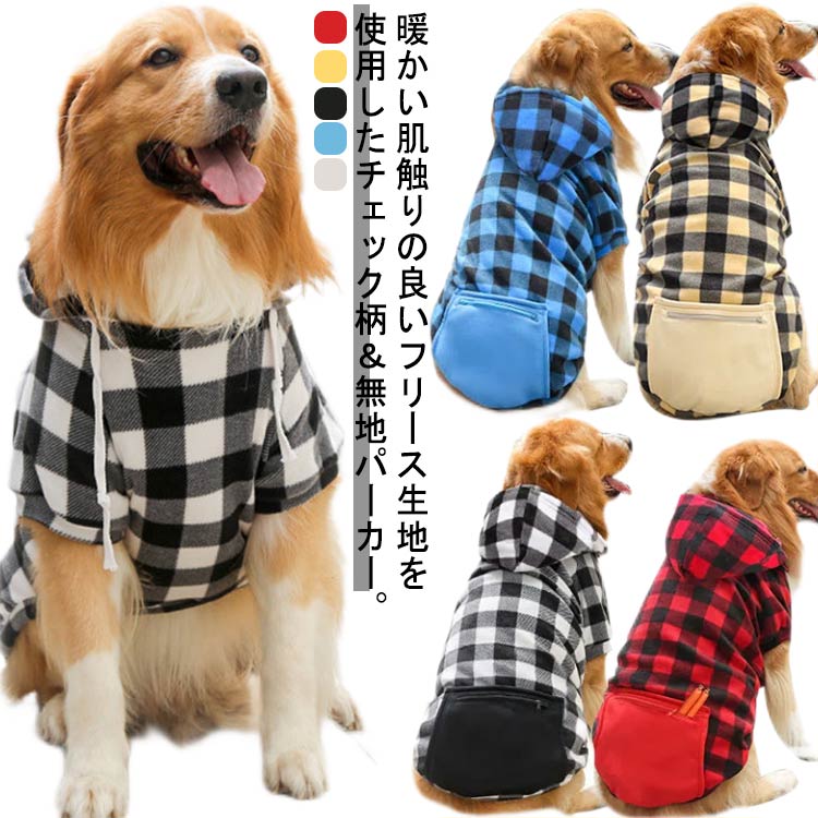 【3点15%offクーポン配布中! スウェット 小型犬 中型犬 秋冬 起毛 フリース ポケット付き チェック柄 無地 パーカー ドッグウェア 大型犬向け 犬服