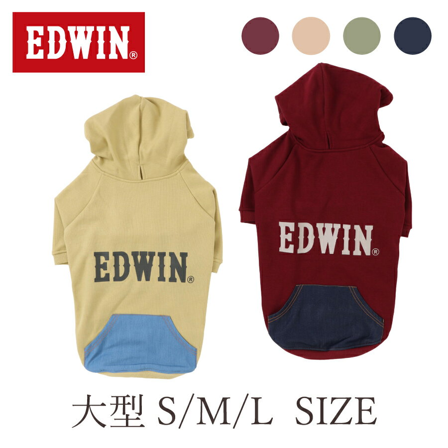 犬 服 EDWIN/デニムライクポケット付パーカー大型犬25a