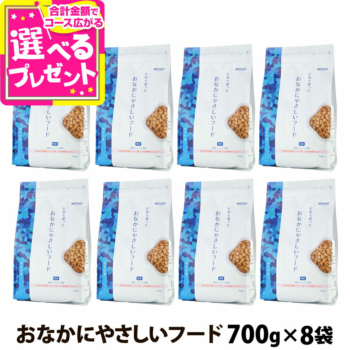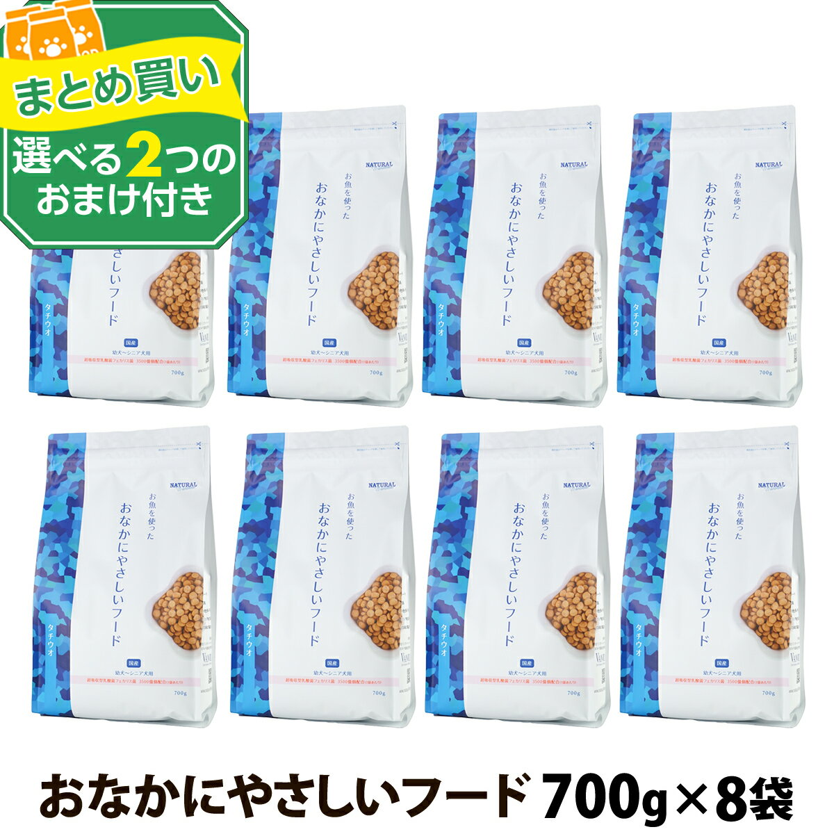 ナチュラルハーベスト naturalharvest おなかにやさしいフード 700g×8袋+選べるおまけ付きセット ドッグフード 国産 全年齢 小粒 ビフィズス菌 フェカリス菌 小型犬 中型犬 成犬 老犬