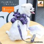 ハーネス リード セット 犬 猫 小型犬 ベスト型 胴輪 リーシュ ドッググッズ キャットグッズ お散歩 お出掛け メッシュ リボン チェック柄 花柄