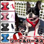 犬 ハーネス 2点セット リード付 ペット 服 ウェアハーネス 胴輪 キャット ドッグ メッシュ