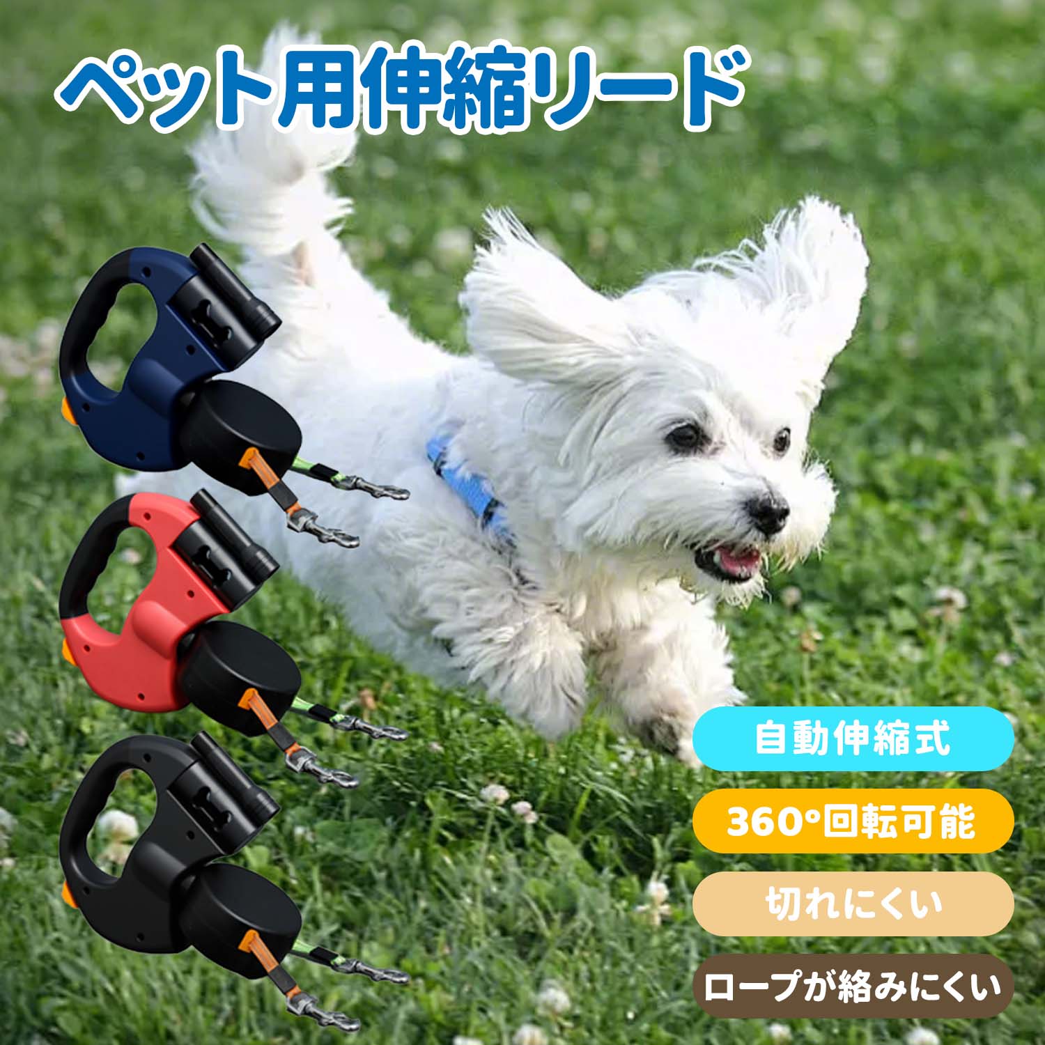 【★11月末スペシャルクーポン★15%OFFク一ボン】犬 リード 2頭引き 自動伸縮 LEDライト付き 反射素材 360度回転 多頭引きリード絡み防止二頭用 中小型犬用 ABS樹脂 高強度ナイロン 軽量 握りやすい グリップ 多機能 犬用散歩グッズ