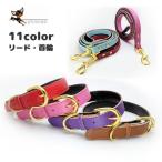 犬 猫 首輪 リード付 2点セット レザー カラフル 軽量 涼しい 快適 ペット 服 胴輪 キャット ドッグ