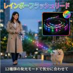 犬 リード 光る LED レインボー フラッシュリード 1.5m 充電式 Type-C 事故防止 散歩 ライト 小型犬 中型犬 大型犬 70kg 耐荷重 反射材 防水 全犬種