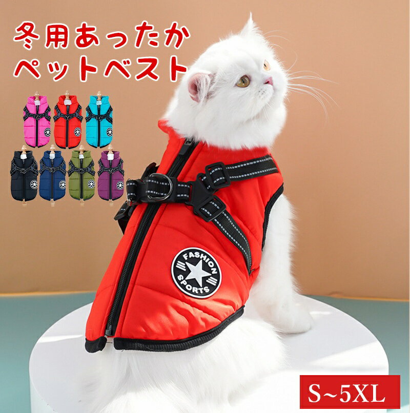 【20%OFF★マラソン×倍ポイント】犬 猫 暖かい ベスト ハーネス付き アウター ファスナー フリース ハーネス 背中 開き ダウンベスト 犬の服 犬服 いぬ 袖なし 防寒 冬 猫服 小型犬 中型犬 大型犬 撥水 寒さ対策 冬服 取り付け簡単 雪 春服 秋服 冬服 レインコート 送料無料