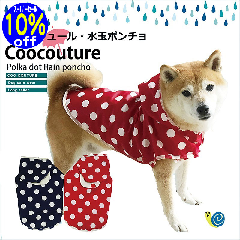 【10%off スーパーSALE】 犬服 レインコート クークチュール 水玉レインポンチョ 着衣擦れ音が鳴らない リード穴付き