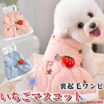 新商品 犬服 ドッグウェア 秋冬 防寒 裏起毛 ワンピース いちごマスコット 小型犬 中型犬 あったか 可愛い 冬服 ピンク ブルー コート S〜2XL ペットウェア