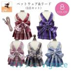 ペット用ワンピース ペットウェア リード 2点セット 小型犬 中型犬 イヌ 猫 ネコ ノースリーブ 袖なし Aライン フレアスカート Dカン付き リボ