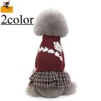 犬 服 ワンピース 秋冬 タータンチェック ニット フリル 伸縮 防寒 ハイネック 小型犬 中型犬 かわいい お出かけ 室内用 ポリエステル XS〜3L Beanspet