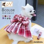 ペットウェア ワンピース リード付き 2点セット ドッグウェア 犬服 Dカン付き 袖なし スナップボタン ペット用品 犬用品 犬の服 チェック柄 リボ