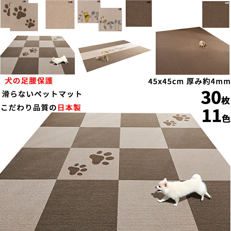 【ポイント10倍 ブラックフライデー 11/18~12/01】【日本製 汚れ防止】ペットマット 30枚 45x45cm 厚み4mm 撥水 大判サイズ 滑らない 足腰負担軽減 犬用マット カーペット ズレない 床暖房対 洗濯OK