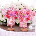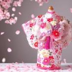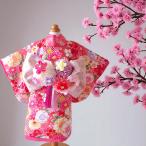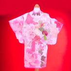 オーダーメイド犬服の着物花結びホワイト&ピンク(帯電防止加工裏地つき)