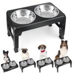 Aystkniet 犬 食器台 中型犬*大型犬向け ペット 餌台 ステンレスボウル 食器 エサ台 4段階 高さ調節可能 餌入れ 犬 ご飯台 (ブラック)