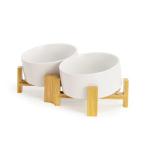 犬 餌入れ ボウル 15度 斜め 陶器 猫 えさ 皿 ペット 食器 水入れ 木製 ボウルスタンド付 高さ調整可能 フードボウル 食べやすい 小型犬 850ml 2個 ホワイト