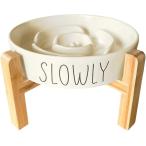 フードボウル 陶器 早食い防止 食器 中型犬 大型犬 猫 ペット えさ皿 スローフィーダー(オフホワイト, 「L」スタンド付き)