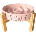 フードボウル 陶器 早食い防止 食器 中型犬 大型犬 猫 ペット えさ皿 スローフィーダー(ロータスピンク, 「L」スタンド付き)