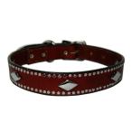 WOOFWEAR 本革首輪 2.5cm幅 ダイヤモンド×ブラウン (レザー 大型犬)