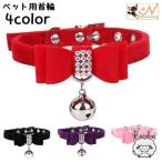 首輪 カラー 犬 猫 ペット用品 お散歩グッズ リボン 蝶ネクタイ ベロア調 ラインストーン ビジュー 鈴 可愛い サイズ調節可能