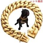 犬 首輪 金色 チェーン キューバチェーン 15mm 32mm 316L ステンレス Bling ジルコニア ロック付 贅沢 ネックレス 噛み防止 散歩