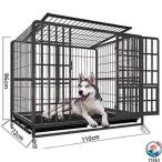 折り畳み式 犬小屋 屋外 二重ドア 大型犬 ロック設計 ホイールやリムーバブルトレイ 犬のケージ ステンレス