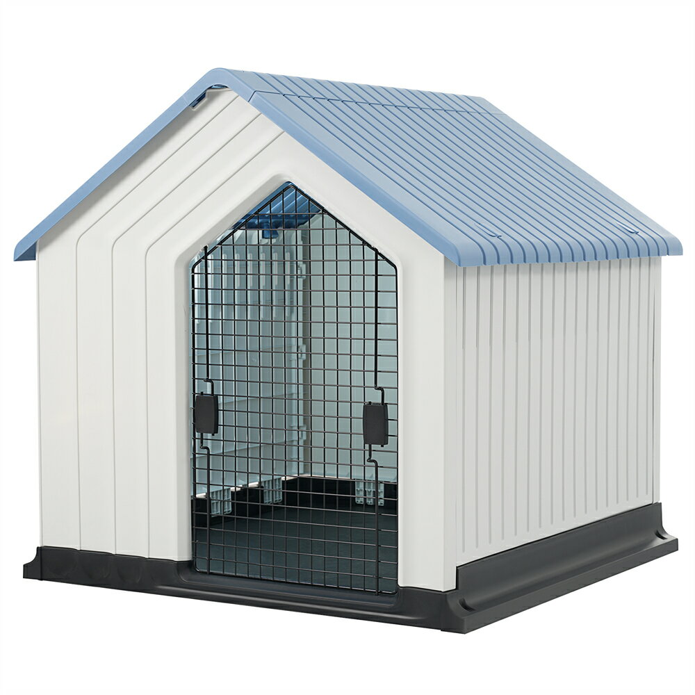 犬小屋 大きいサイズ 屋外用 犬舎 室外 中型犬用 大型犬用 mサイズ ドア付き プラスチック製 ペットハウス オールシーズン 通気 日焼け対策 雨除け 水洗い 裏庭 室内 さびない 頑丈