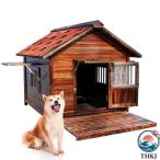 犬用ケージ 大型犬用サークル 無垢材 木造犬小屋 屋外防水 KNK(株) 84×74×80cm 大型犬小屋 屋外用 頑丈 犬舎 木製ペットハウス ハウス