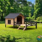 木製犬小屋 屋内用 無垢材アスファルト屋根犬小屋 大型ポーチ付き 小型犬から大型犬まで屋外パティオ用