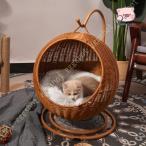 籐製 キャット ハウス ちぐらタイプ 猫小屋 猫ベッド キャットハウス 猫ベッド ペット用ベッド 小型犬ベッド ウレタンクッション付き 夏用 猫ちぐら ドーム