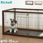 リッチェル 犬用 サークル ケージ 伸縮できる 幅90~154cm 11段階調整 木製 スライドペットサークル ワイド 木目 木目調 ウッド ハウス ゲージ 小型犬