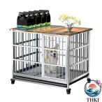 ペットケージ 木製 犬小屋 ステンレス鋼 犬用ケージ 屋根付き 小型犬 中型犬 大型 キャスター付き トレー付き ペットサークル ウッディサークル 頑丈 角パイプ
