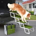 【並行輸入品】 大型犬用階段 折りたたみ式ペットスロープ 人工芝付き 軽量アルミニウム ペットラダー 犬用カーステップ 人工芝の表面付き 高台/トラッ