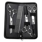 MGOXO トリミング ハサミ 犬用グルーミングはさみキット プロフェッショナルな トリミングシザー 安全な丸い先端部 ステンレス製 すきバサミ