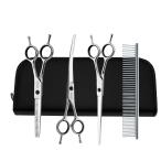ペット用 犬 猫 トリミング ハサミ シザー はさみ カット カーブシザー すきばさみ ケース付き 7点 セット ペット 犬用 ケア ノミ予防 ダニ予防 ブラック
